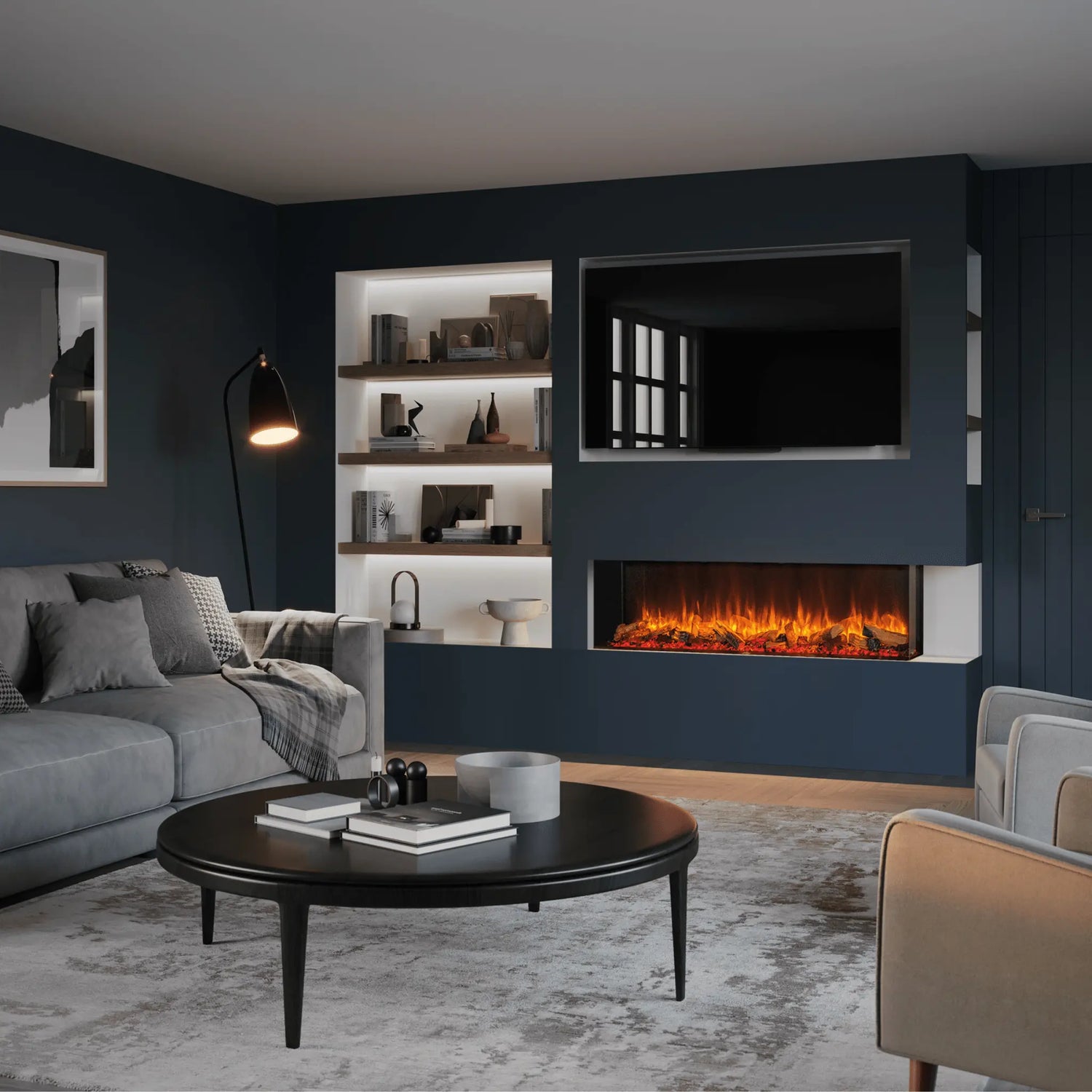 The Skope Series delivers an elevated flame experience with exceptional value. Designed for versatility, Skope can be installed as a single-sided linear fireplace, a corner design, or a fully open three-sided bay, allowing you to create the perfect focal point in any space. With advanced LED flame technology, smartphone app control, and optional log and mood-lighting enhancements, Skope blends modern convenience with the cozy ambiance of a traditional fire - without venting, gas lines, or maintenance.